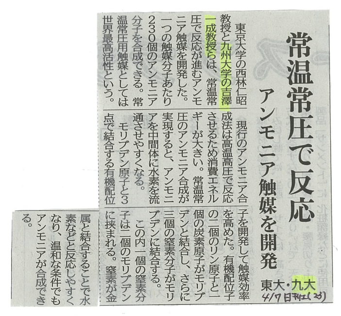 「安価な鉄錯体を用いて温和な条件下で窒素ガスの触媒的還元に成功!