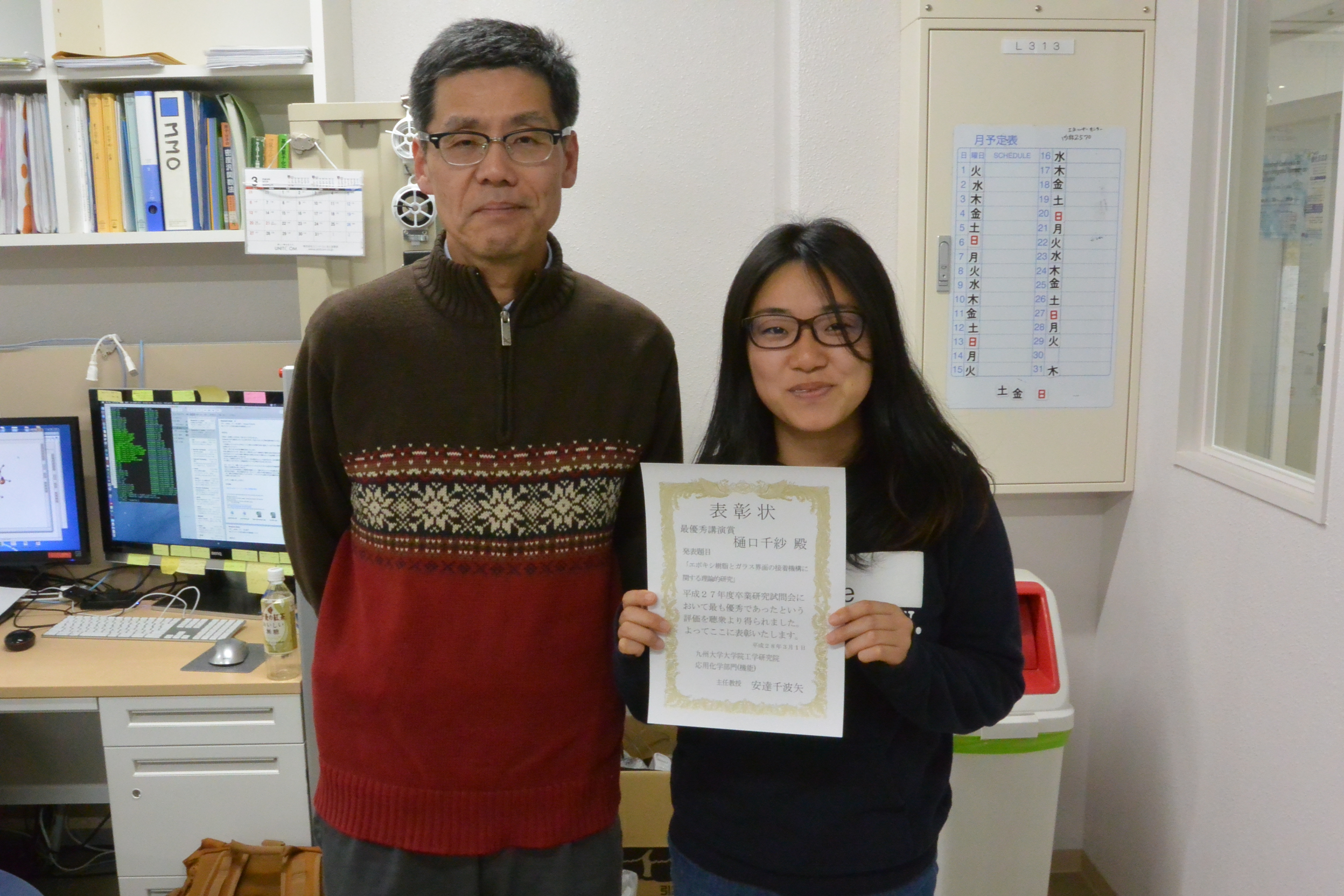 樋口千紗の卒業発表「エポキシ樹脂とガラス界面の接着機構に関する理論的研究」が、最優秀講演賞を受賞しました。