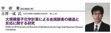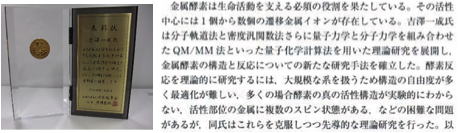 吉澤一成教授が酵素反応の理論解析により日本化学会学術賞を受賞しました。