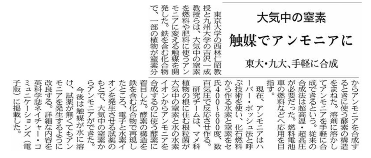 -次世代型窒素固定法の開発へ前進する研究成果-」