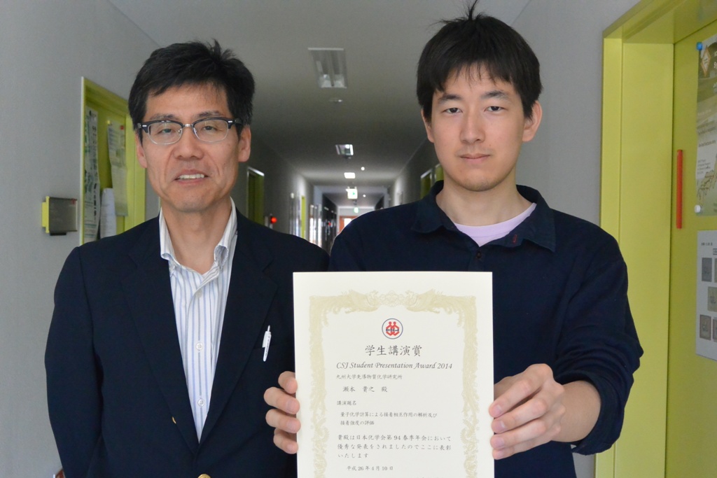 日本化学会第94春季年会学生講演賞受賞 (2014年4月30日)